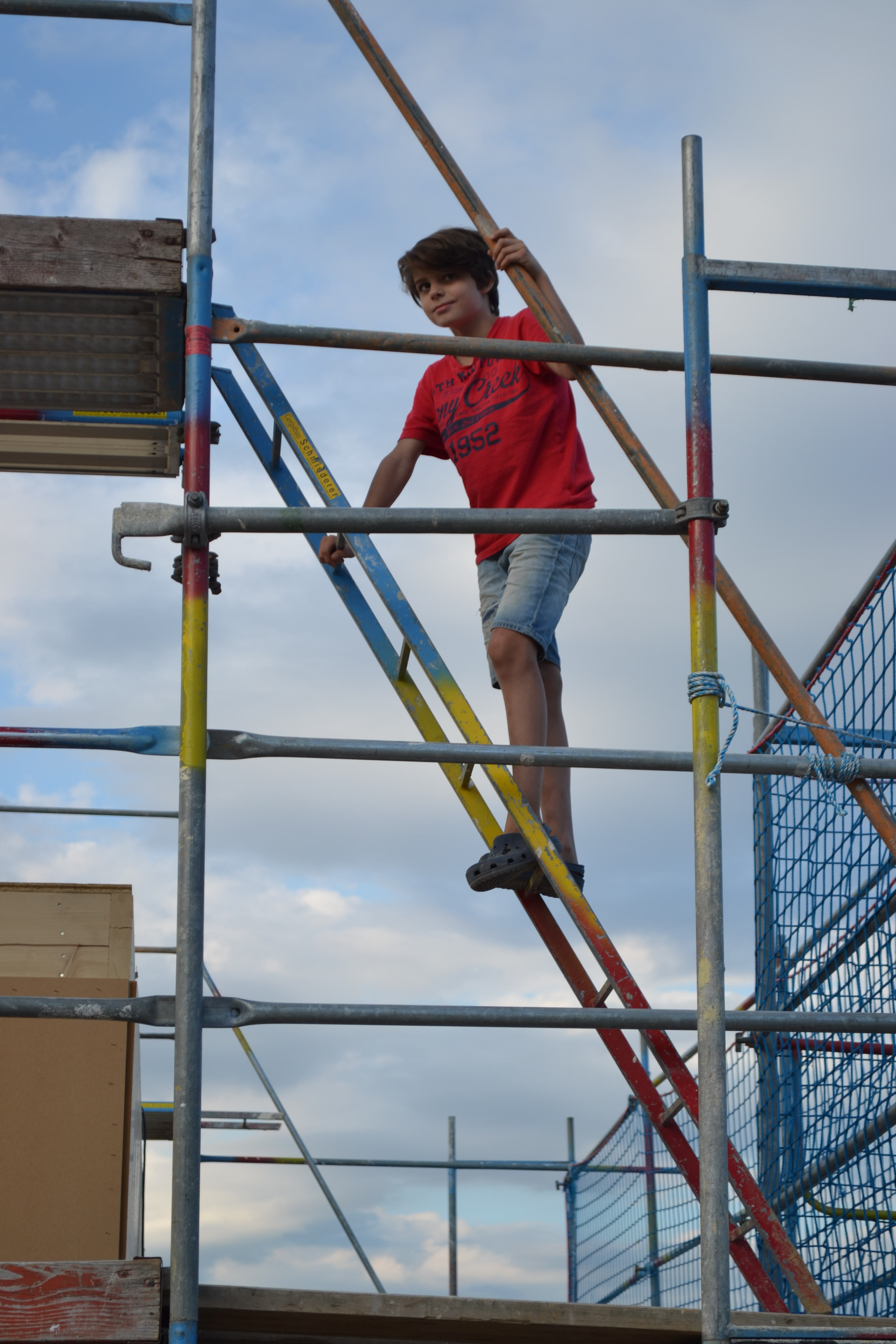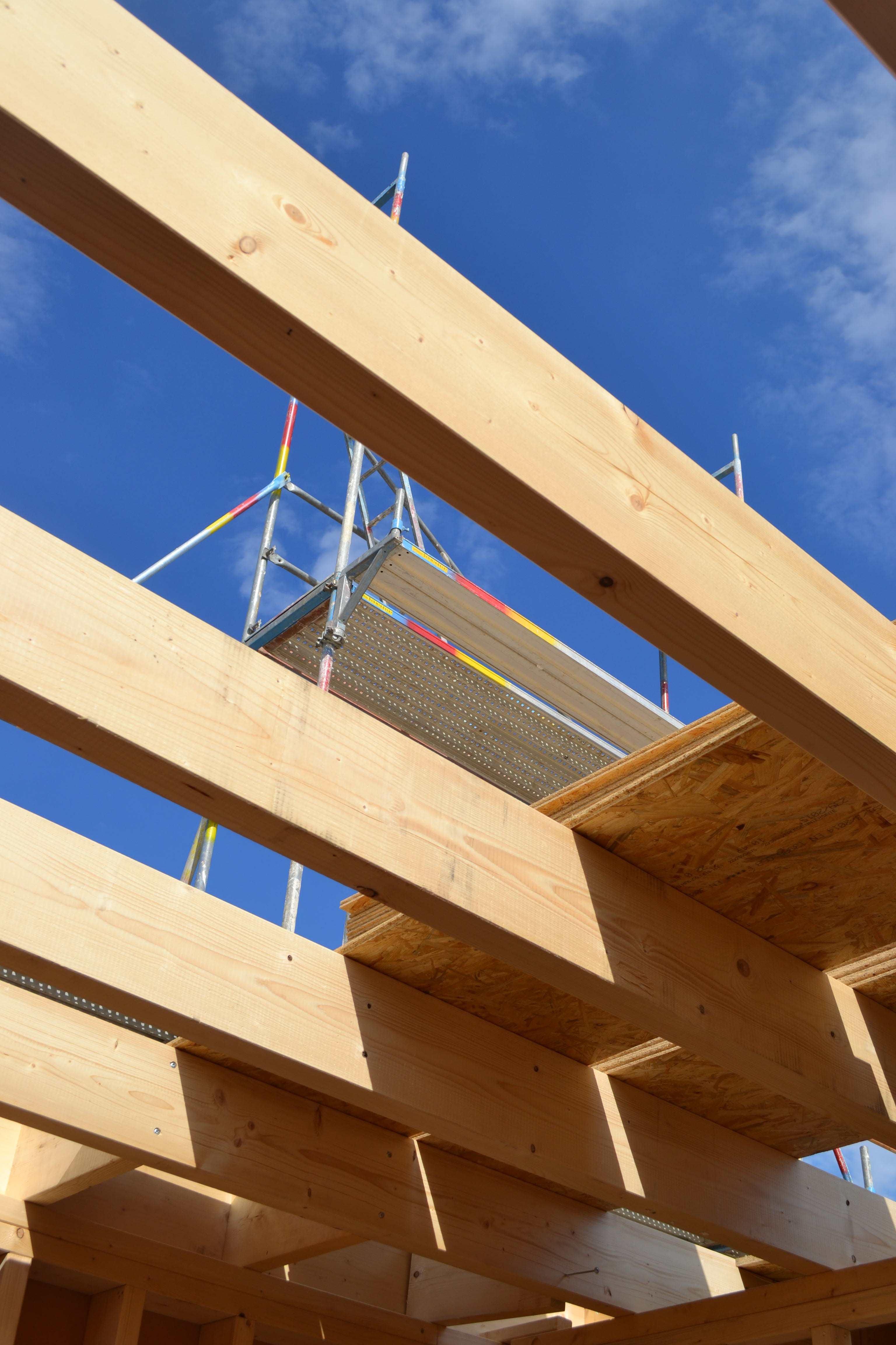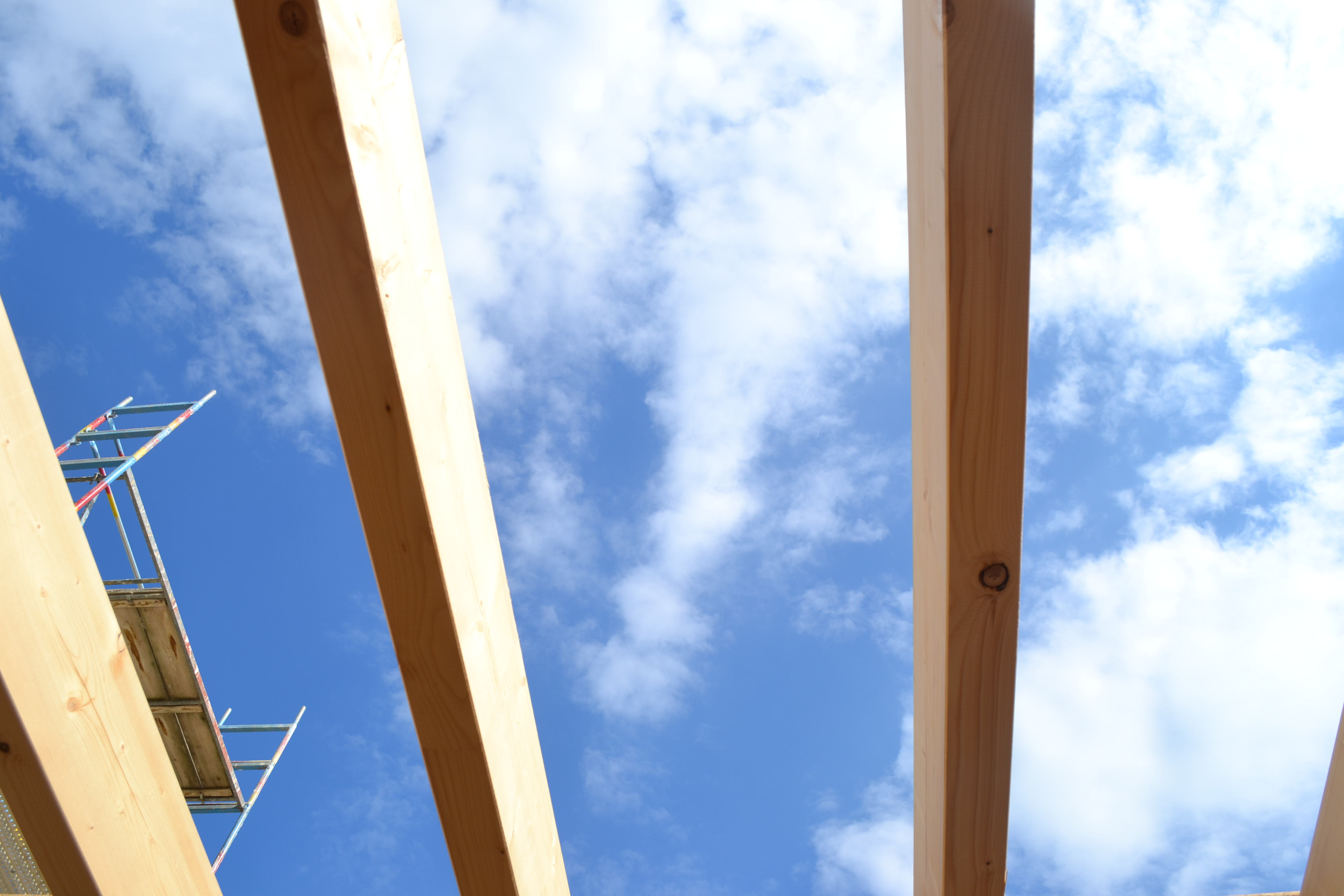 Heute ging es aufwärts – die Gerüstbauer waren da und haben das Gerüst gestellt. Jetzt kann man die spätere Form erkennen und mir wurde ein bisschen mulmig bei dem Gedanken, dass ich da oben rauf muss, um das Haus zu streichen.