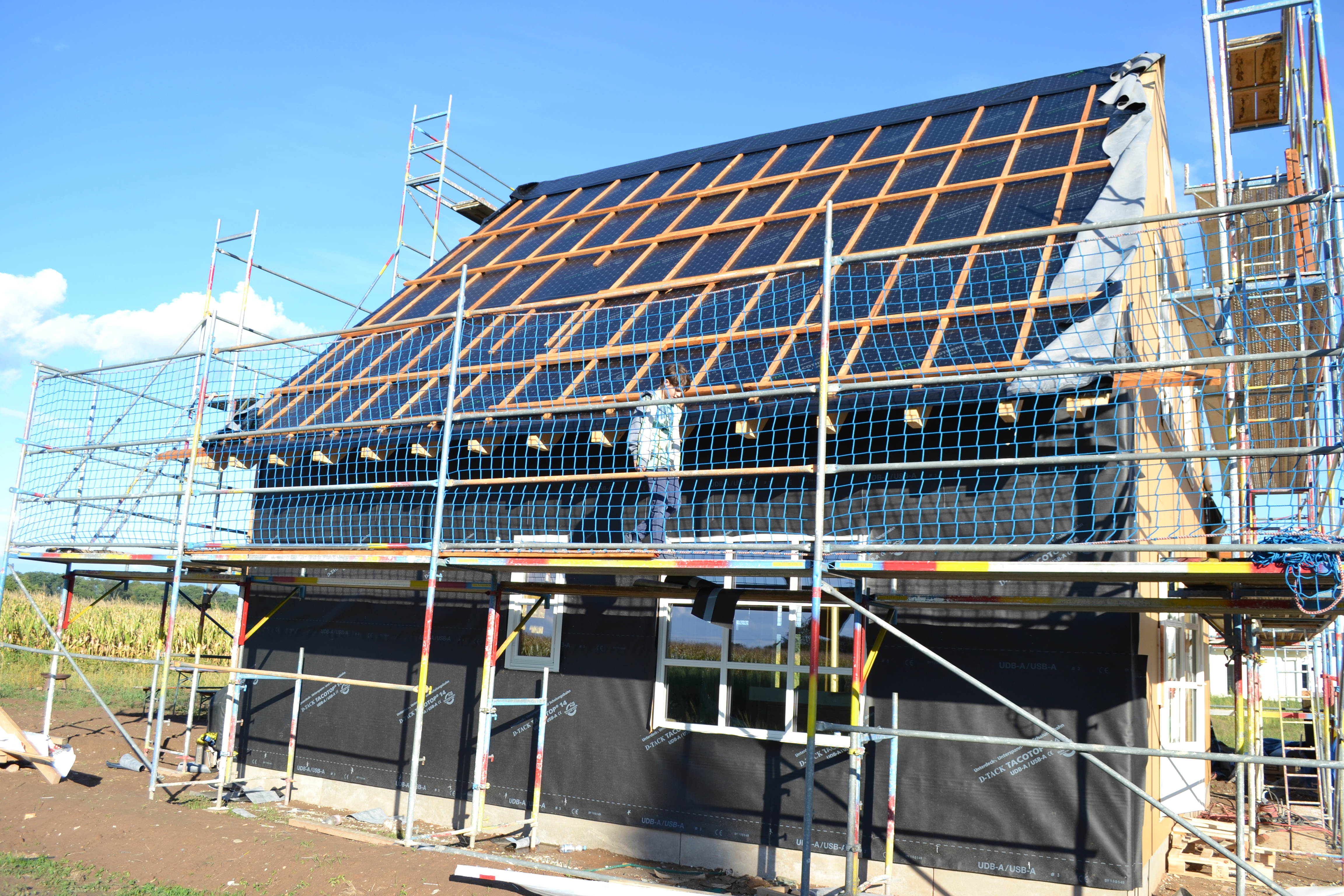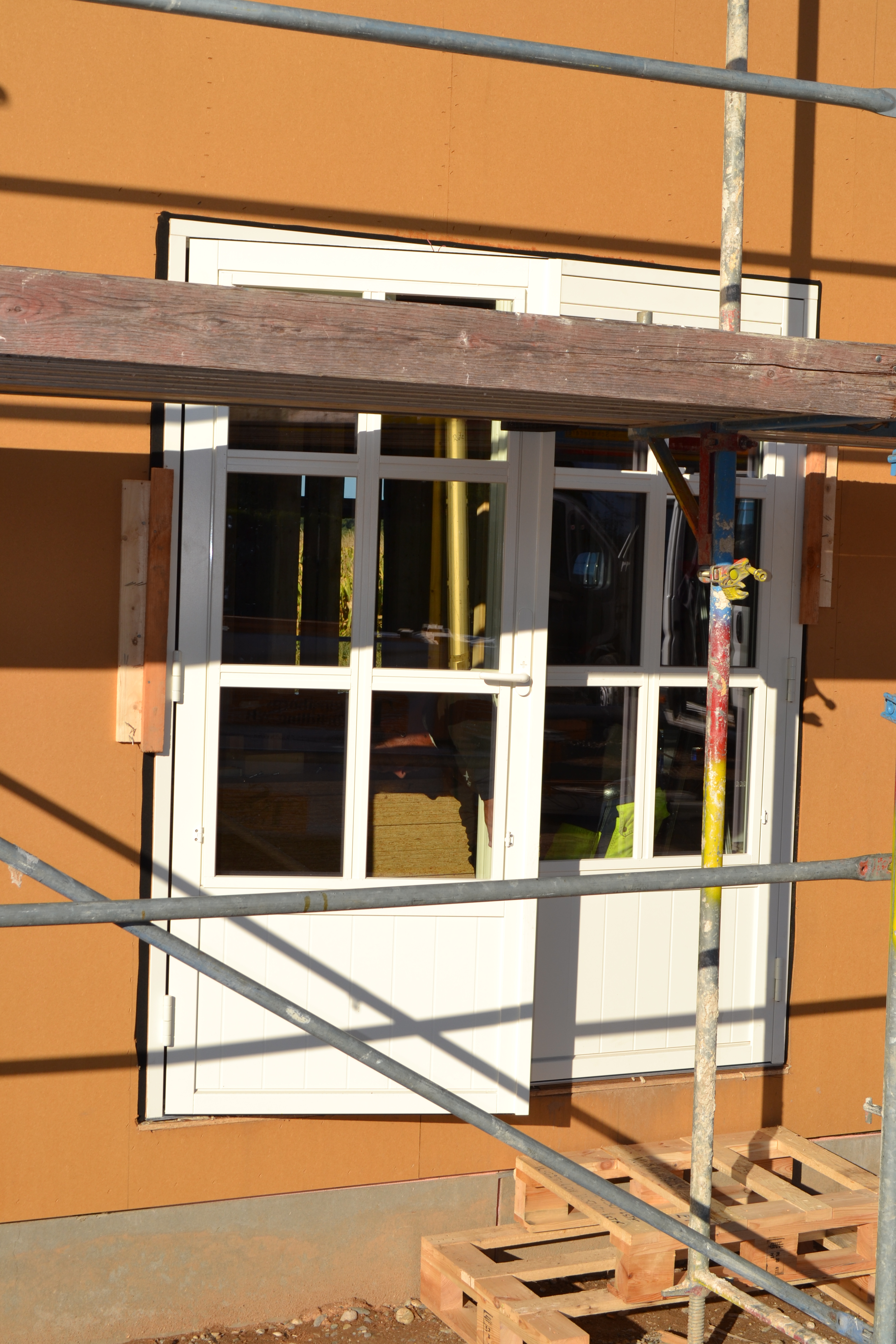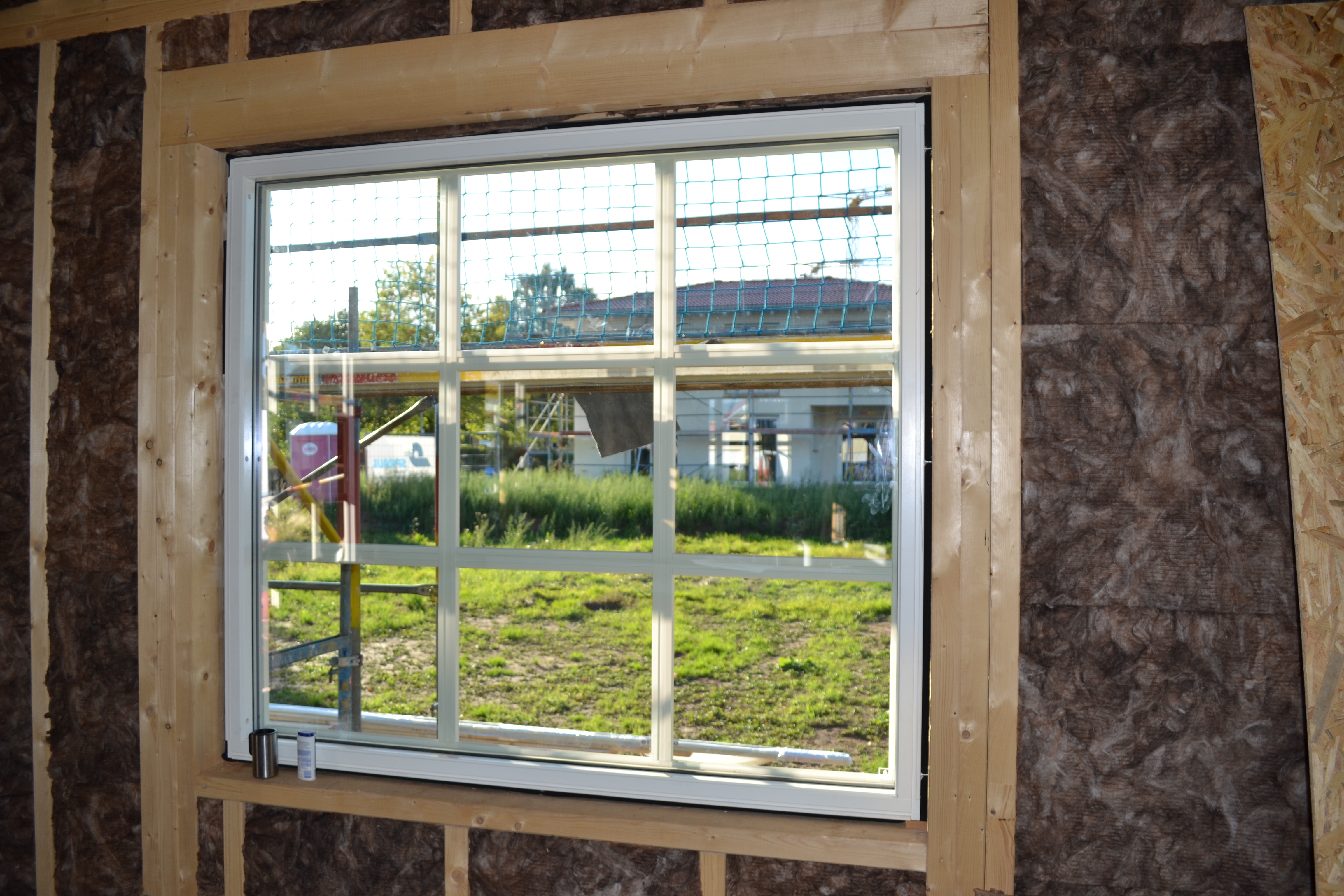 Heute waren dann fast alle Fenster eingebaut und das Innenausbau-Team hat angefangen, die Dämmung im Obergeschoß anzubringen und mit der Lüftung weitergemacht. Ich war sehr positiv überrascht, als ich gesehen habe, dass alle Fenster im OG eine Kindersicherung haben und die EG-Fenster abschließbar sind.