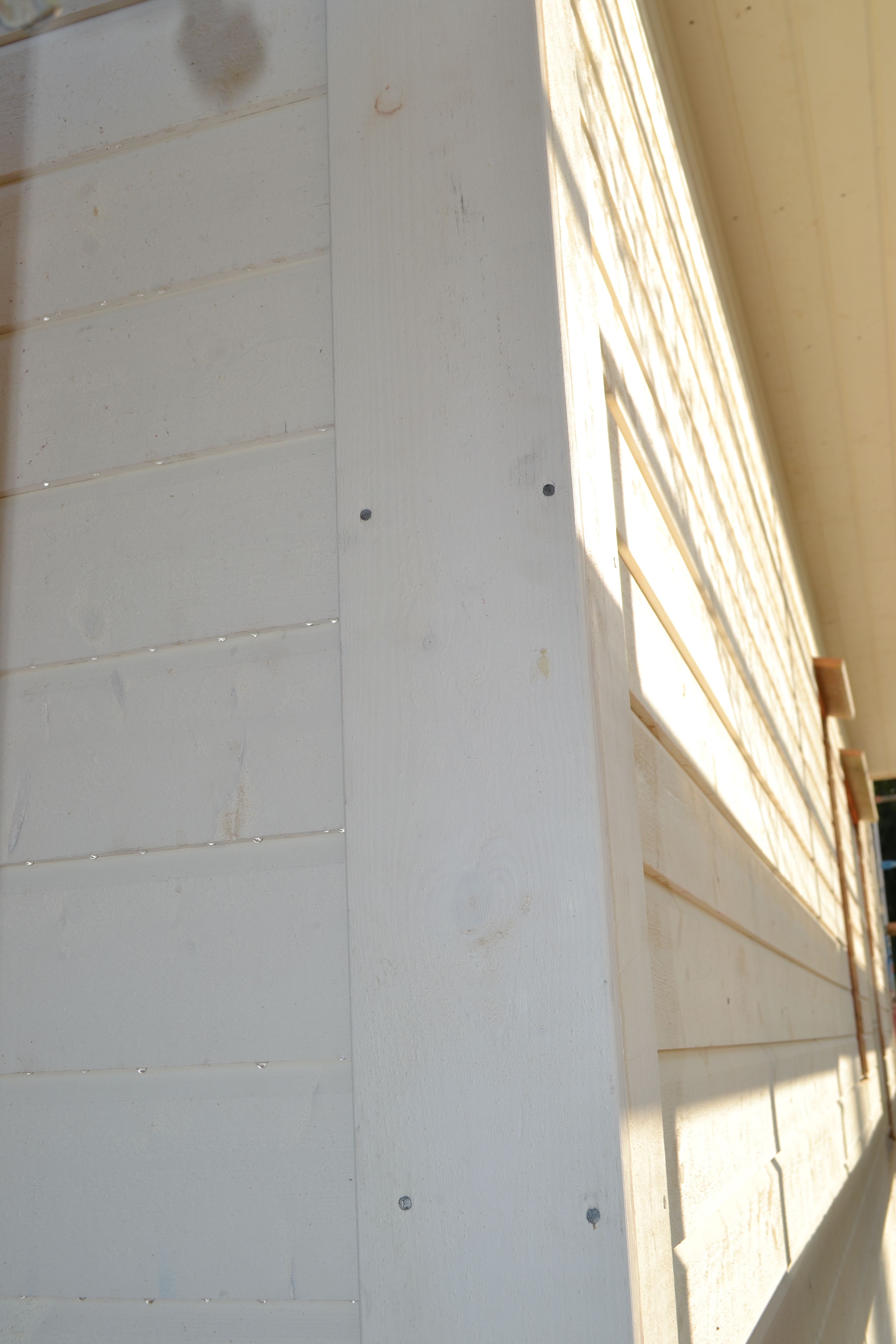 Die Eckenabschlüsse, das was nachher weiß sein wird und sich so schön von den roten Latten abhebt