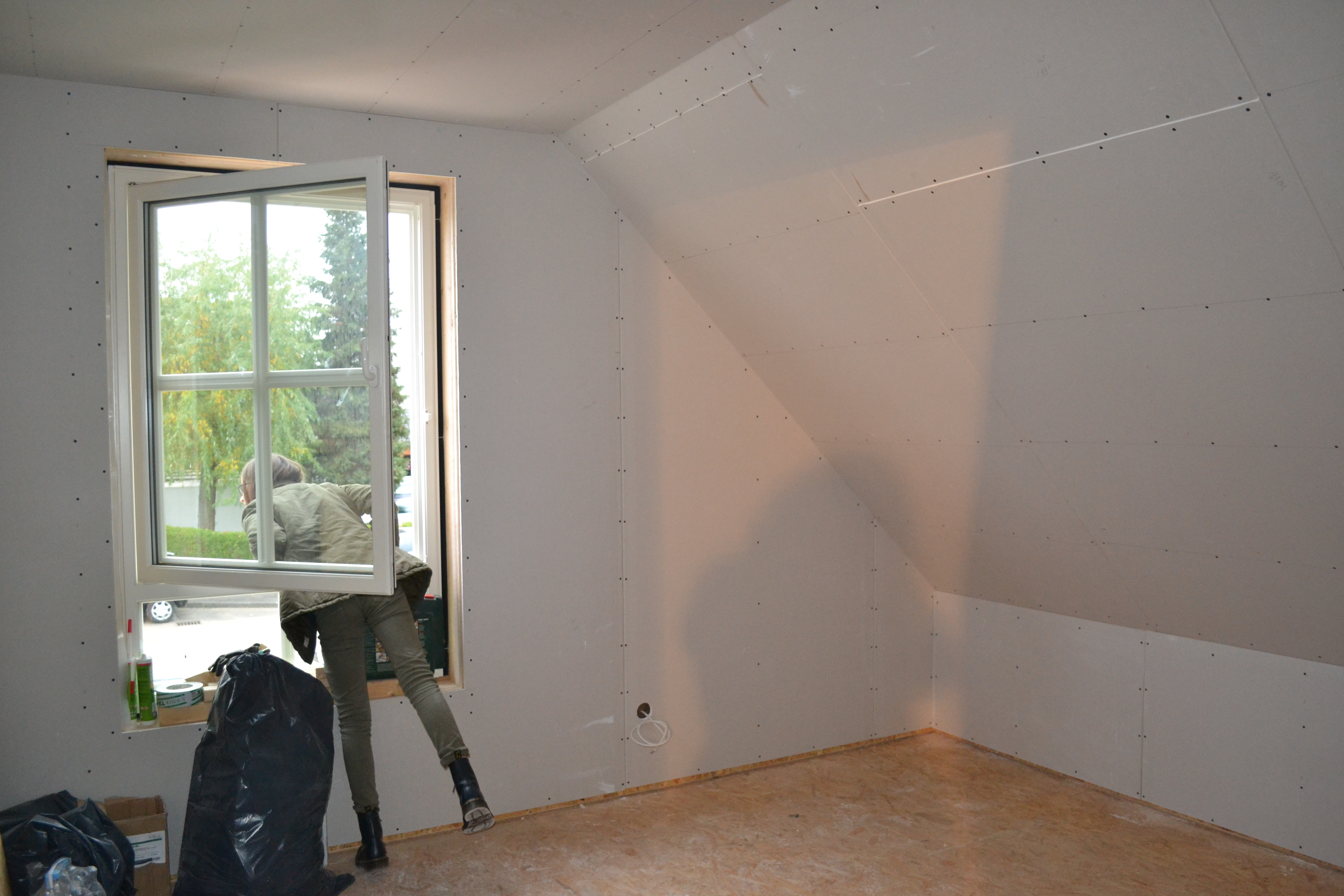 Der Boden oben muss noch mit Trockenestrichplatten belegt werden. Nächste Woche bin ich im Landschulheim mit meiner Klasse, aber meine Familie hat schon einen Spachtelplan ausgearbeitet. Übernächste Woche habe ich eine Woche Herbstferien, dann kann ich auch wieder mit anpacken.