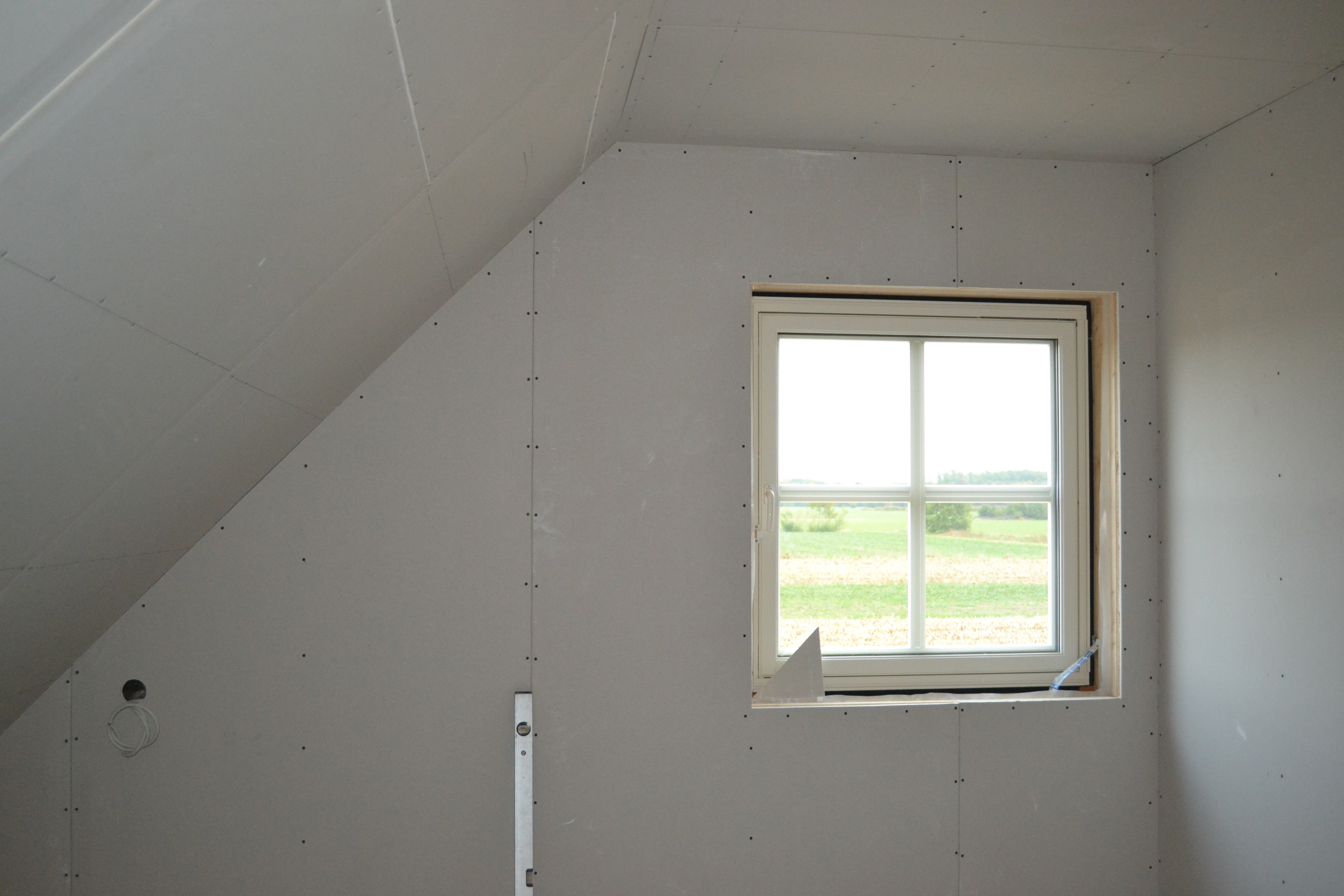 Klar, von außen ist unser Haus wunderschön aber wir wissen ja alle, dass man sich von Äußerlichkeiten nicht blenden lassen soll… Seit Dienstag sind René und Daniel wieder da und arbeiten im Inneren des Hauses weiter. Oben sind alle Wände mit Rigipgsplatten beplankt und auch unten wird es immer weißer.