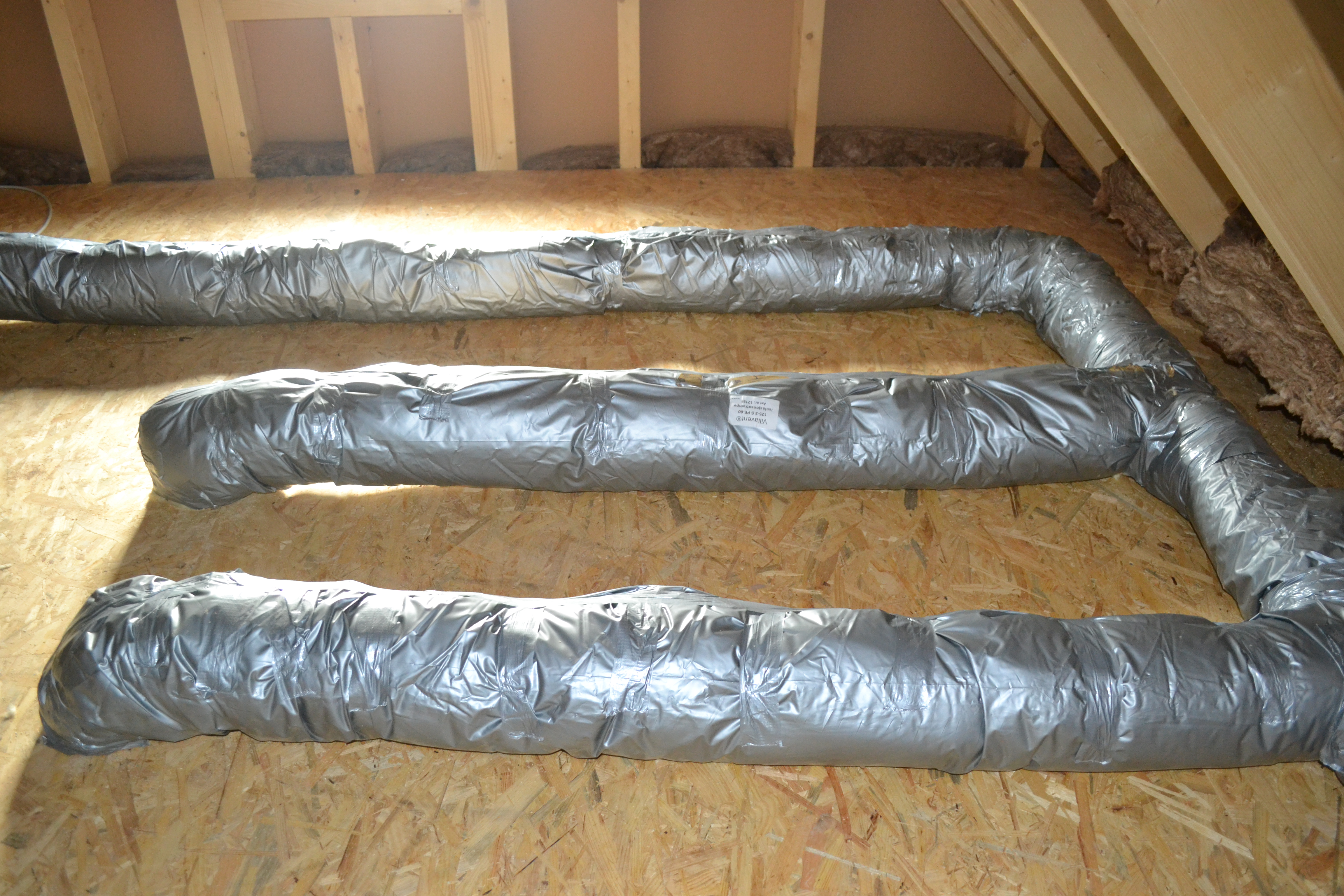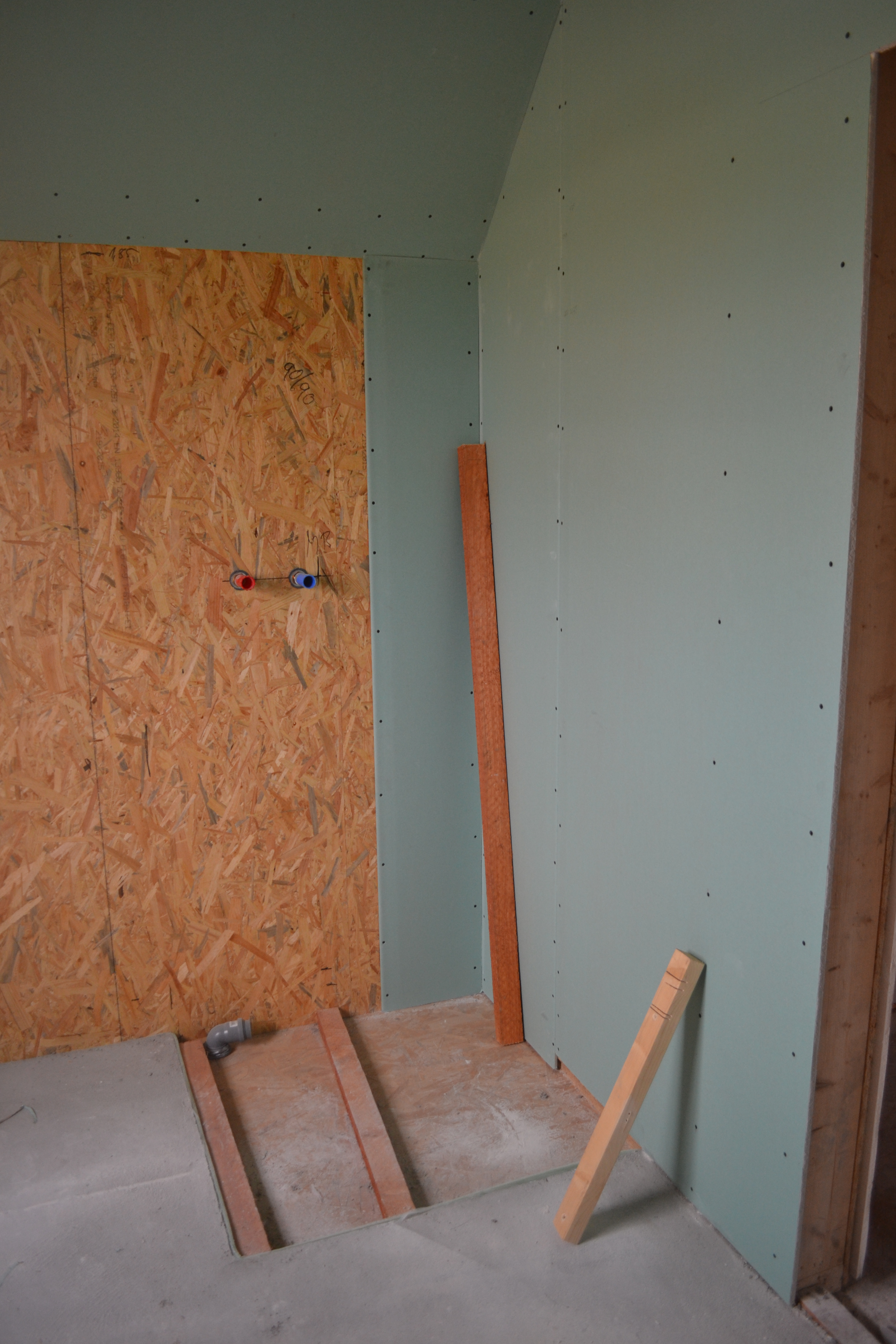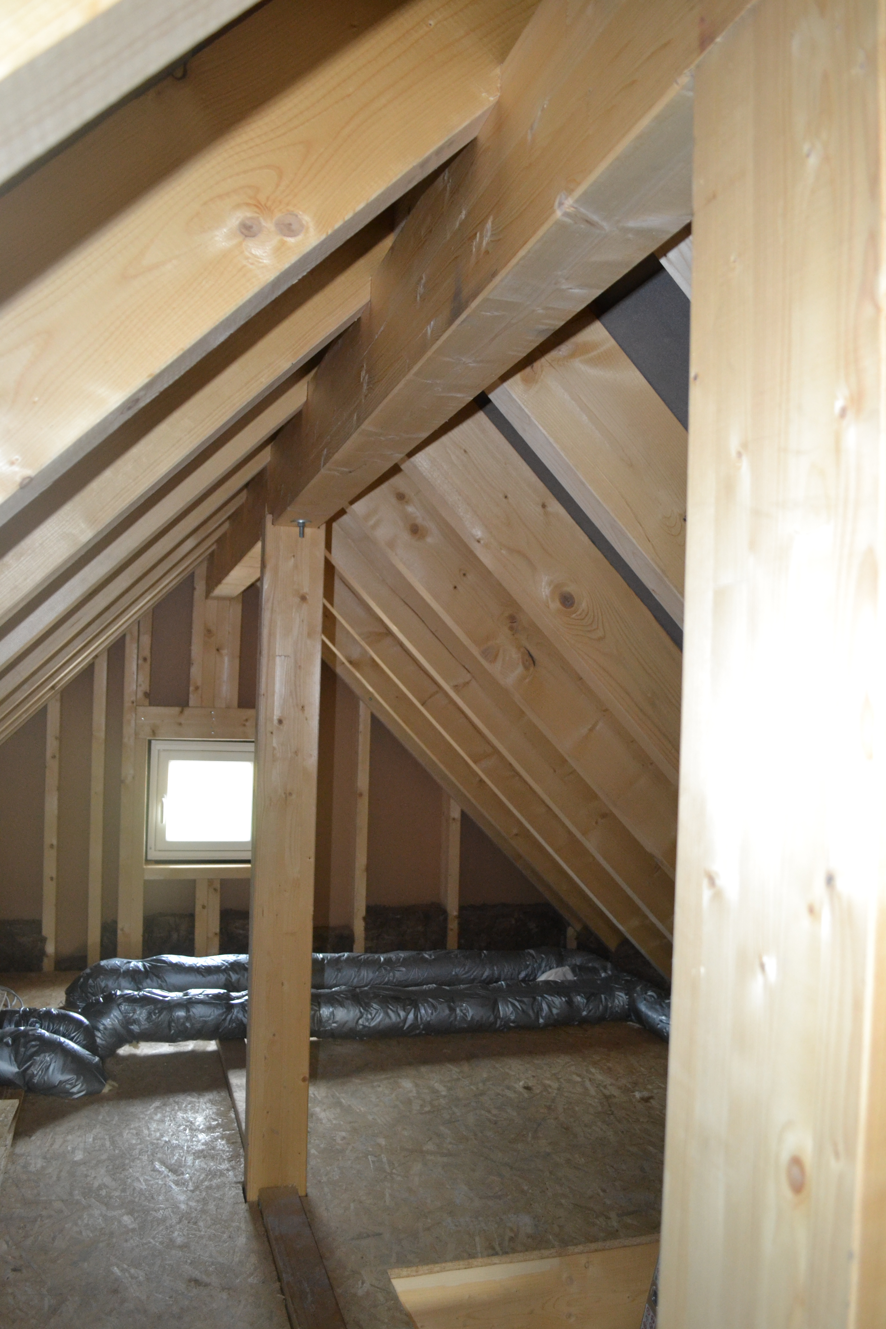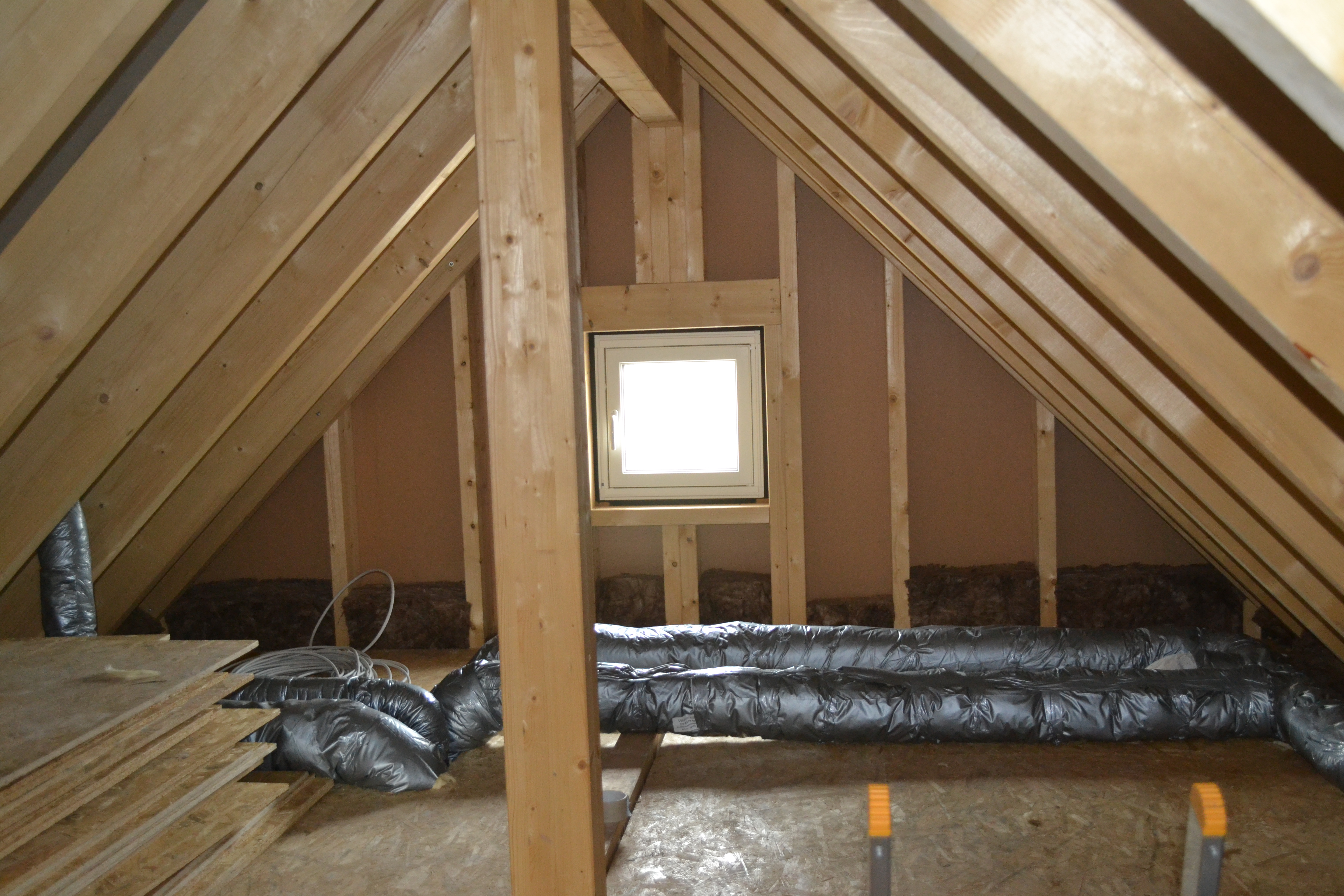 Am Wochenende haben meine Mutter und ihre Freundin Georgia wieder eifrig gepinselt. Es fehlte noch der zweite Anstrich der Fenster an der Ostseite. Das war nicht hoch und gut mit der Leiter zu machen. Heute haben meine Eltern und mein Schwager OSB-Platten zugeschnitten und auf den Dachboden befördert. Da oben liegen die Lüftungsrohre frei und da meine Kinder sich sicher mal nach ganz oben verdrücken möchten (darum habe ich oben auch Steckdosen und Fenster), werden wir über die Rohre ein Podest aus OSB-Platten bauen, damit niemand drauftritt. Im nächsten Jahr werden wir den Dachboden dämmen, damit man im Sommer nicht schmilzt und im Winter nicht einfriert.