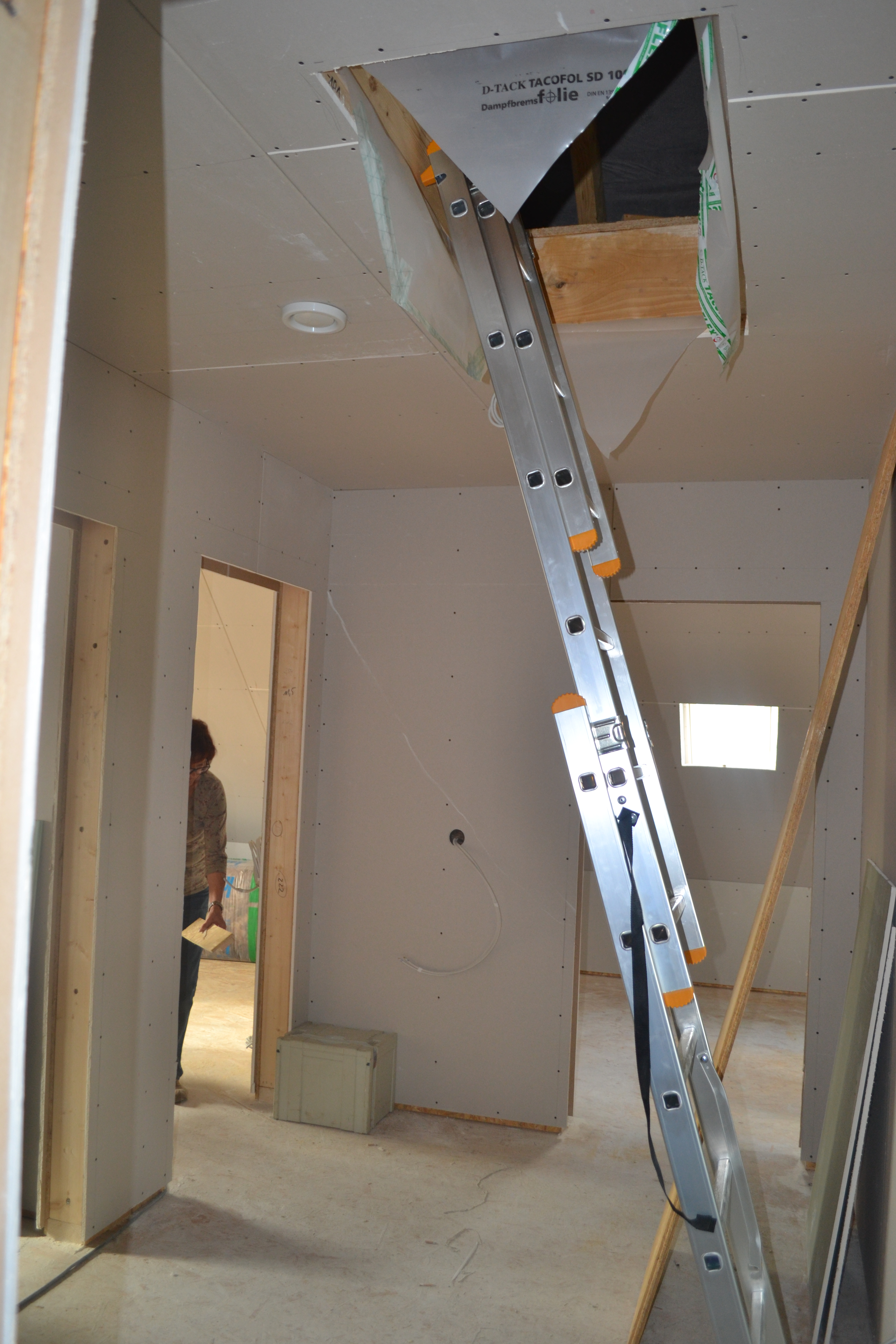 Nächste Woche kommt Herr Dalle, der Bauleiter, und macht schon einmal eine Vorabnahme, damit wir anfangen können zu spachteln. Außerdem macht er das Aufmaß für die Treppe und begutachtet meine gewölbte Latte an der Vorderfassade. Außerdem wird der Blower-Door-Test durchgeführt – schade, dass ich nicht dabei sein kann…
